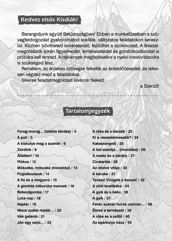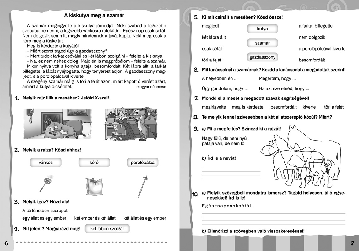 munkafüzet, 1. osztály, írás, olvasás, szöveg, szövegértés, szövegmegértés, szövegértelmezés, szövegfeldolgozás, szövegalkotás, bekezdés, mondat, mondatalkotás, fogalmazás, kognitív funkció pl. síkbeli tájékozódás, jobb-bal iránydifferenciálás, azonosságok keresése, analízis-szintézis