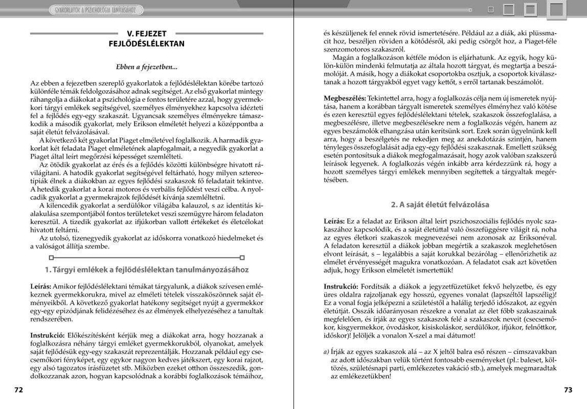 Aki tanított már valaha életében, jól tudja, milyen nehéz a tanulók érdeklődését kiváltani és fenntartani, bármely tantárgyról is legyen szó. Különösen így van ez a pszichológia esetében, amely a maga elvont ismeretanyagával nem a legkönnyebben tanítható (és tanulható) tantárgyak közé tartozik. Ennek a könyvnek éppen az a célja, hogy megkönnyítse a tanárok számára a pszichológia tanítását. Gyakorlatainak alkotó felhasználásán keresztül szemléletes módon mutathatók be a pszichológia különböző témái, és a saját élményként szerzett tapasztalatok nyomán a tanulókban jobban megmaradnak az elsajátítandó ismeretek. A könyvet elsősorban azoknak ajánljuk, akik kellő képzettséggel rendelkeznek ahhoz, hogy pszichológiát tanítsanak, de azokhoz is szól, akik egyszerűen csak érdeklődnek a pszichológia iránt.