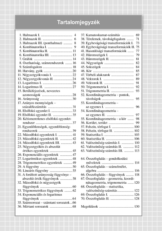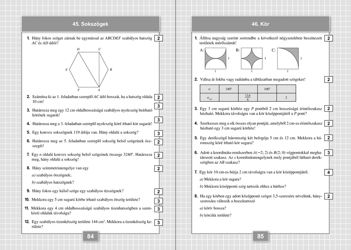 középiskola, 12. osztály, matematika feladatgyűjtemény, középszintű metematikaérettségi, középszintű matematikaérettségi követelmény, középszintű matematikaérettségihez 45 perces kidolgozott feladatsorok, összefoglaló feladatsorok, részletes feladatmegoldások, önellenőrzés