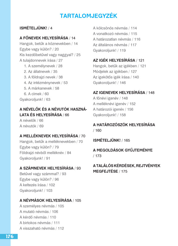 A feladatok megoldásához, az ellenőrzéshez rendszeresen elő kell venni A magyar helyesírás szabályai című könyvet. Ezen kívül rendszeresen használni kell majd a Magyar értelmező kéziszótárt, a Magyar szólások és közmondások című könyvet is. A feladatgyűjtemény végén található a megoldások gyűjteménye és az ajánlott tollbamondási szövegek.