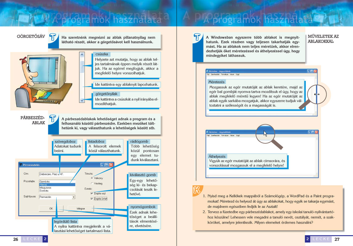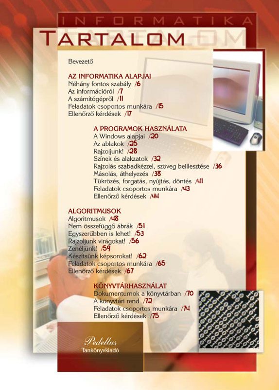 A tankönyv megismertet az informatika alapjaival, az operációs rendszer fogalmával és használatával. Megtanítja, hogyan lehet egy tevékenységet lépésekre bontani, és a számítógép számára érhető nyelven megfogalmazni.