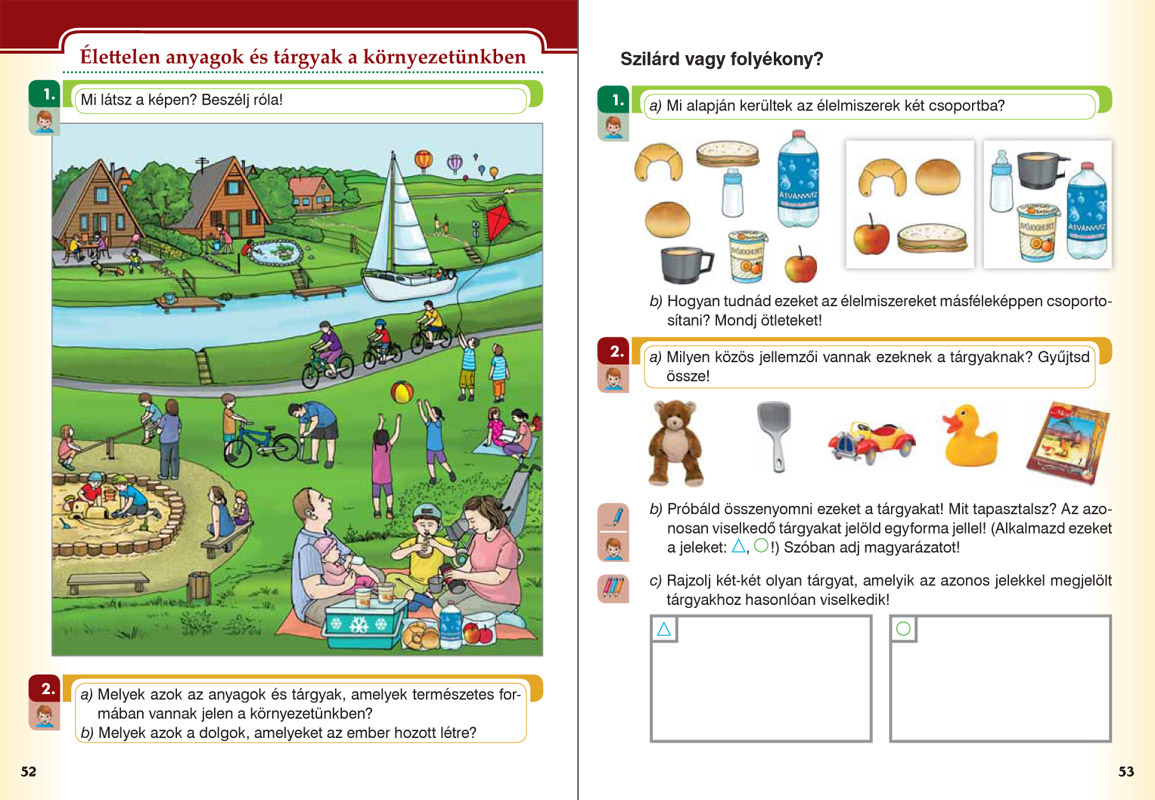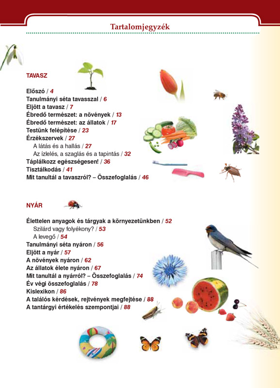 A kétkötetes munkatankönyv elsősorban saját élményekre, tapasztalatokra épít. A szerzők segítik az iskolai beilleszkedést, mivel először új környezetükkel, annak szokásaival ismertetik meg a tanulókat. Ezt követi a természet változásainak, az évszakok emberekre gyakorolt hatásának, az állatok viselkedésének és a növényvilág jellemzőinek megfigyeltetése. A tanulók megismerkedhetnek az emberi test felépítésével, az érzékszervek működésével, a testi higiéniára vonatkozó alapvető illemszabályokkal. Mindeközben egyszerű kísérleteket végeznek, tanulmányi sétákon vesznek részt. Az I. kötet feladatai az őszhöz és a télhez, a II. köteté pedig a tavaszhoz és a nyárhoz kapcsolódnak.
