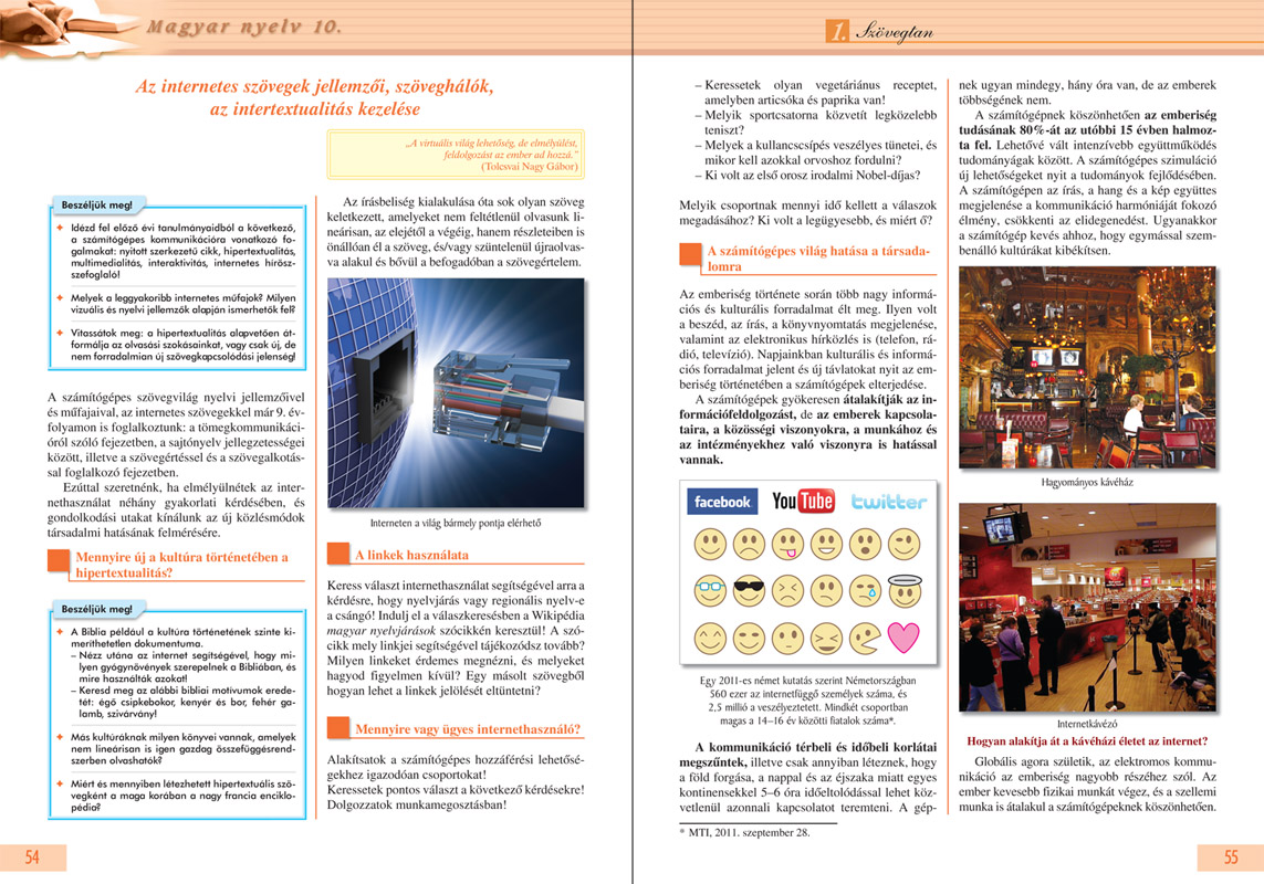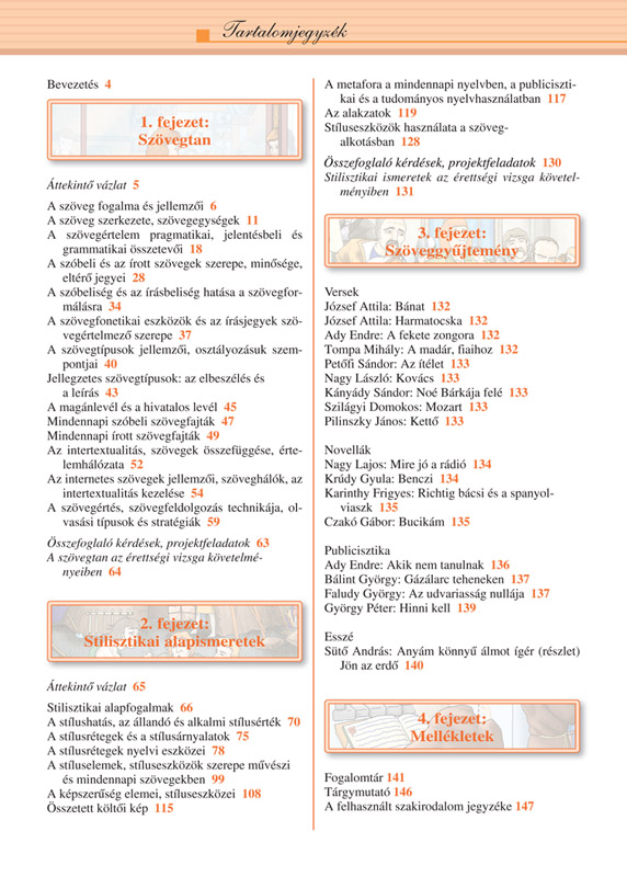 A szerző 2013-ban átdolgozta és korszerűsítette tizedikes tankönyvét is, így ennek felépítése követi az aktuális kerettanterveket, bár fogalomrendszere gazdagabb. Két témakör (Szövegtan, Stilisztikai alapismeretek) feldolgozását teszi lehetővé. Elméleti tudnivalókat és gyakorlati feladatokat is tartalmaz. Az előző kötethez hasonlóan bőséges válogatást nyújt példa- és vendégszövegekből, amelyek a mindennapi életből (pl. a napi sajtóból vett cikkek vagy a tanulókhoz közel álló slágerszövegek) és szépirodalmi művekből (pl. Csokonai Vitéz Mihály, Babits Mihály, Juhász Gyula, Radnóti Miklós, József Attila, Weöres Sándor, Karinthy Frigyes, Varró Dániel) merítenek. Így ez a kötet is segítheti a nem eleget vagy alig olvasó tizenévesek körében az olvasási kultúra fejlesztését.