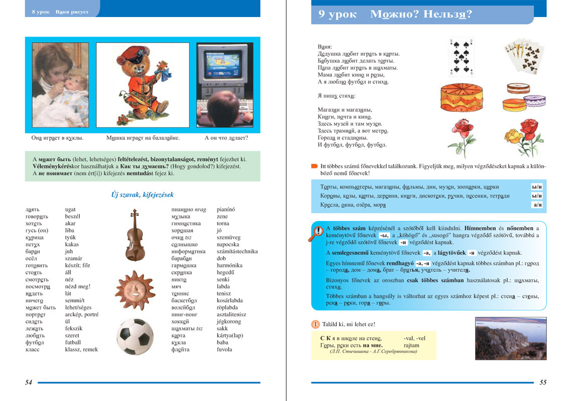 A nyelvkönyv az általános iskola 5. osztályosainak készült, de segítségével más korosztályok is megismerkedhetnek az orosz nyelv alapjaival. A leckék dialógusai, szövegei az élő nyelv fordulataira épülnek. A gyakran előforduló verses forma a könnyebb bevésést kívánja elősegíteni. A mai orosz életből vett képek, reklámok, feliratok, térképek stb. formájában háttérként jelen van a nyelvkönyvben a mai orosz valóság, ugyanakkor segítségükkel a nyelvtanulók megteszik az első lépéseket az autentikus szövegekkel való ismerkedés felé is. Az országismeret más dimenziójú közvetítésére szolgálnak a dalok, közmondások, versikék, nyelvtörők, találós kérdések, játékok.