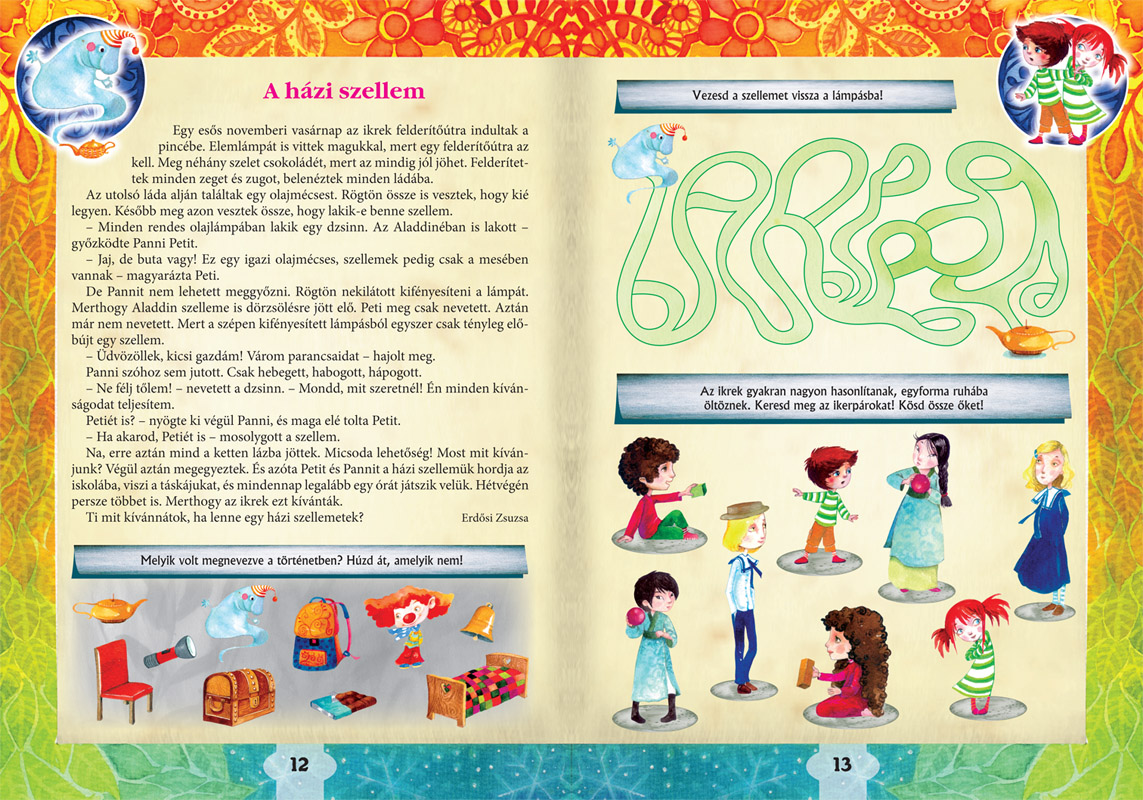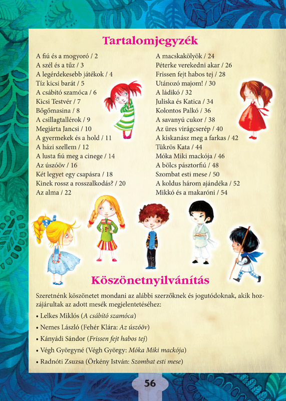A mesegyűjtemény rövid meséket tartalmaz, amelyekhez képességfejlesztő feladatok kapcsolódnak. E meséket tartalmilag az köti össze, hogy valamennyi történetben gyerekek a főszereplők. A kötet szerkesztője elsősorban kortárs műköltészeti alkotásokból válogatott, amelyek egy része tanító célzatú, olyan emberi tulajdonságokat (hiúság, torkosság, irigység) mutat be, amelyek kerülése, leküzdése fontos ahhoz, hogy a gyerekek társas-érzelmi kapcsolatai megfelelően fejlődjenek. Ezen túl a kis olvasók olyan szituációkkal (segítségadás, testvéri szeretet és féltékenység, rosszalkodás, árulkodás, állatmentés) is találkozhatnak, amelyeket maguk is nap mint nap átélhetnek, és amelyek sikeres kezeléséhez, megoldásához ezek a történetek mintát nyújthatnak. A feladatok az alapképességeket fejlesztik, amelyek nélkül nem lehet eredményes a tanulás.