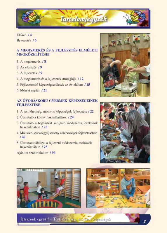 E kiadvány szerves folytatása a sorozat második kötetének, amelyben a testi érettség, motoros képességek vizsgálatát, mérését mutatták be a szerzők. A folytatásban a fejlesztés kerül a középpontba, amelynek előbb az elveivel, majd módszereivel és eszközeivel is megismerkedhetünk. A szerzők olyan fejlesztő játékokat válogattak össze, amelyek kipróbálásával látványosan javulhat gyermeke teljesítménye, miközben kiváló szórakozást nyújtanak akár az egész családnak. Tartalmazza a kiadványhoz tartozó mellékleteit is!